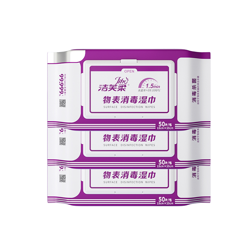 洁芙柔 铵盐杀菌不含酒精家用物表消毒湿巾 50抽*3包