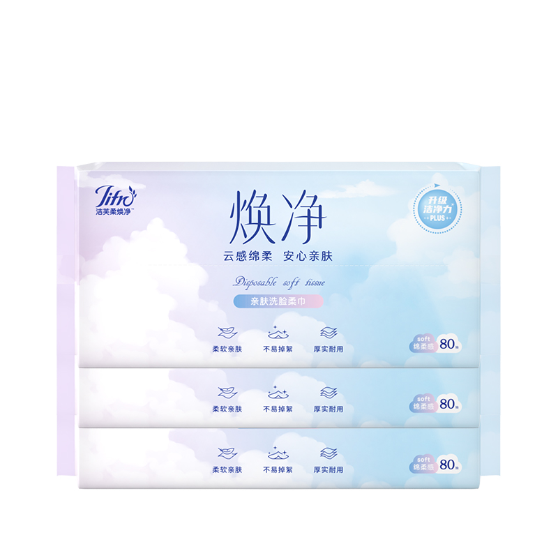 洁芙柔 一次性干湿两用加厚抽取式款洁面棉柔巾 80抽*3包