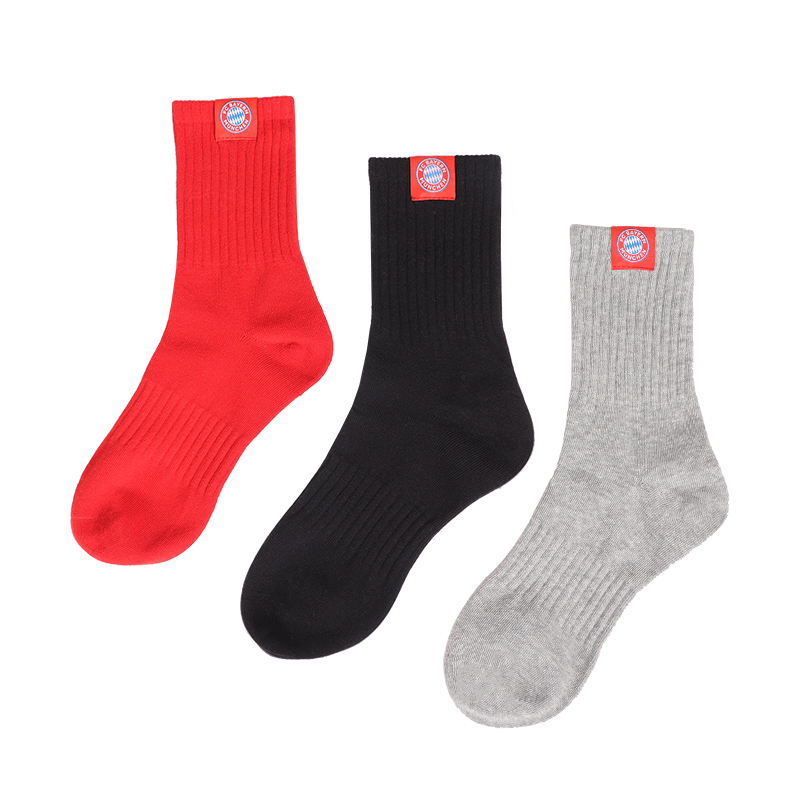 拜仁慕尼黑足球俱乐部 | 纯色字母针织袜休闲日常袜子 黑红灰三色