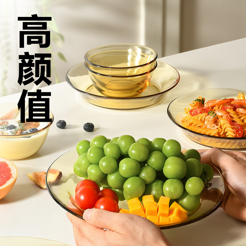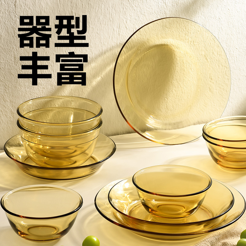 网易严选 10件套琥珀高硼硅玻璃餐具 饭碗x4+面碗x2+7.5寸深盘x2+9寸深盘x2