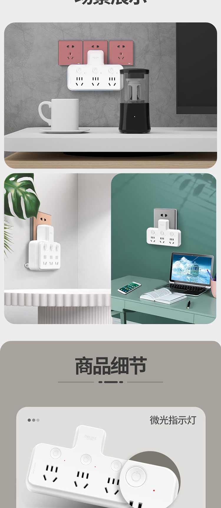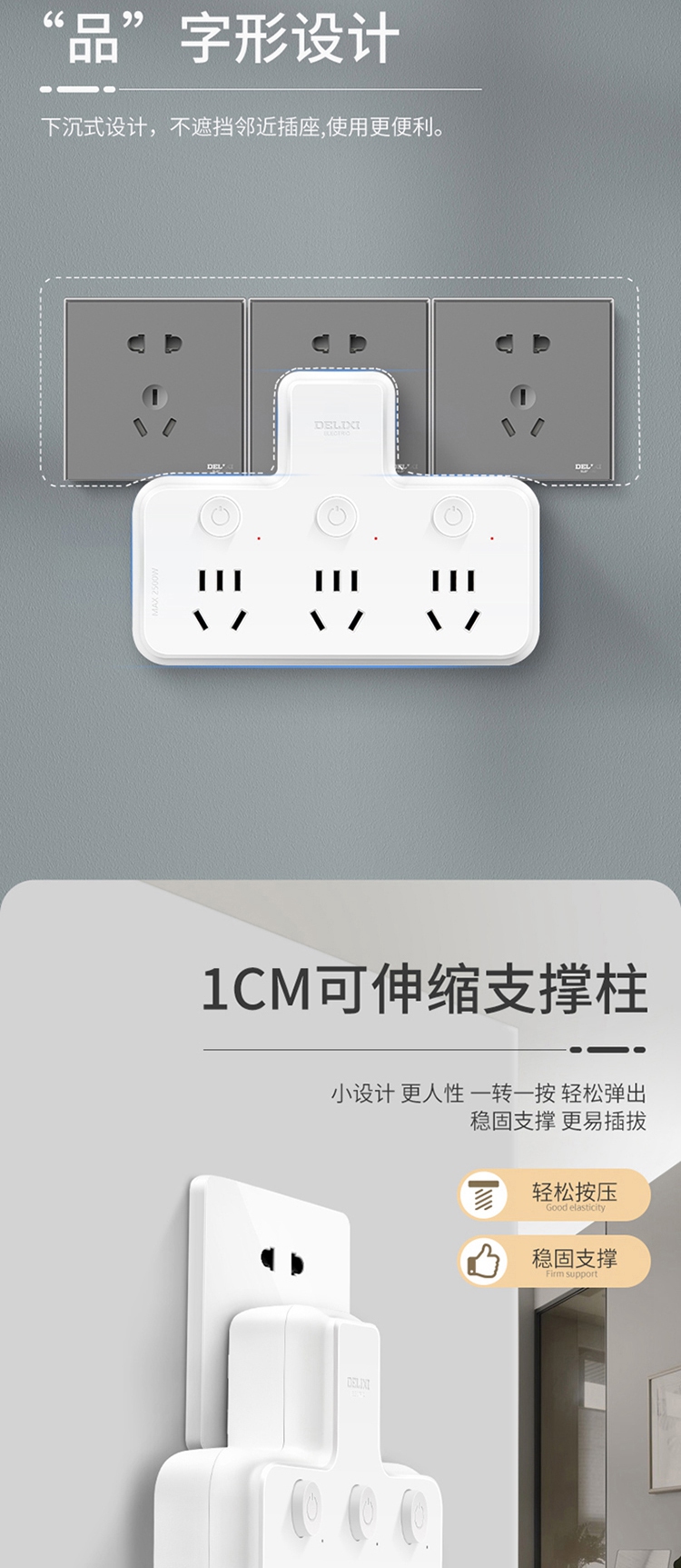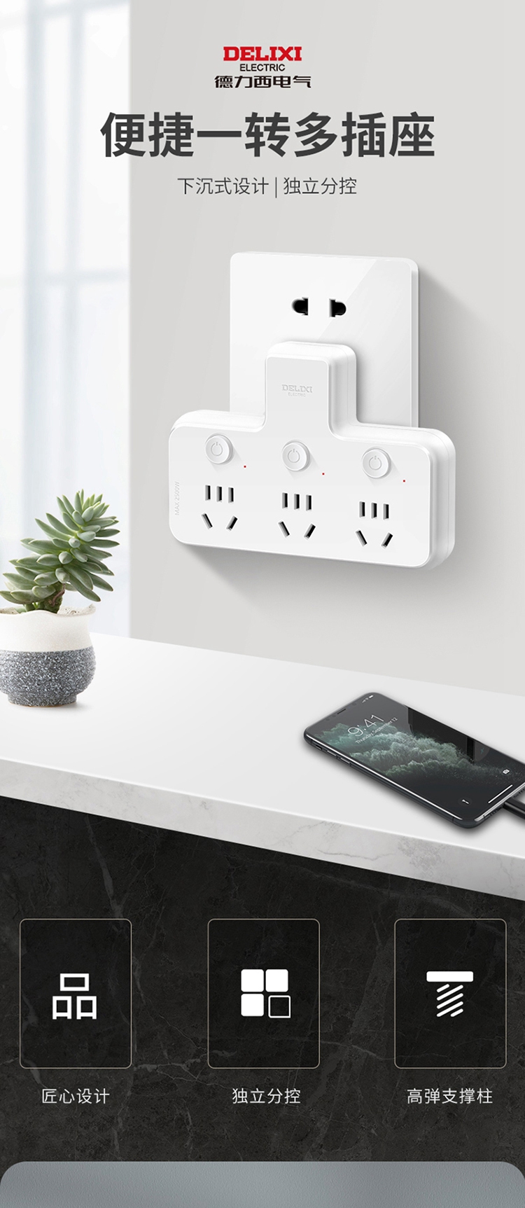 德力西电气CD98Z-B系列一转三三位五孔分控品字形转换器CD98Z-B3K3XP 三位五孔
