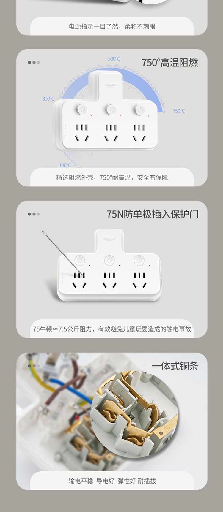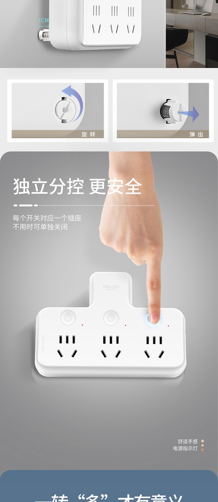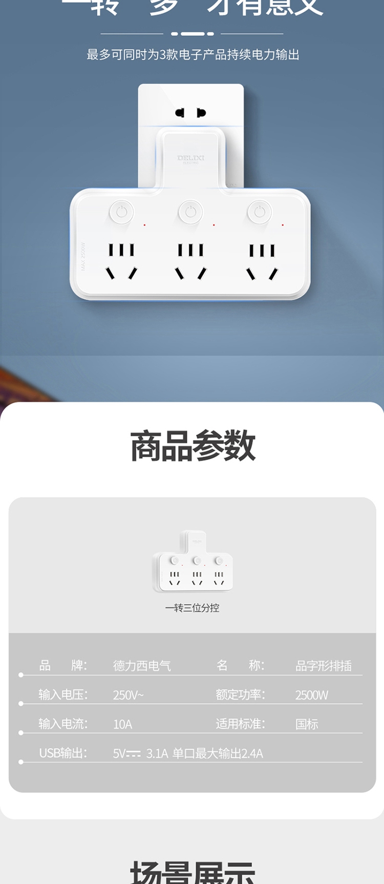德力西电气CD98Z-B系列一转三三位五孔分控品字形转换器CD98Z-B3K3XP 三位五孔
