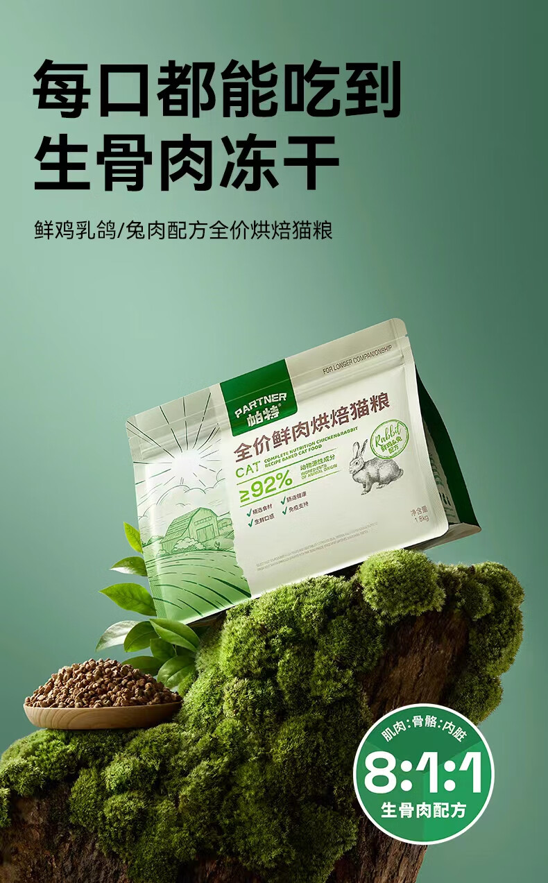 帕特 全价鲜肉烘焙猫粮-鲜鸡&乳鸽配方 1.8KG/包