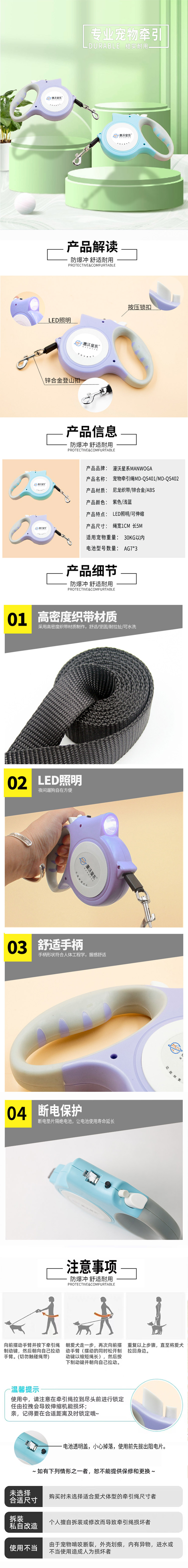 漫沃星系 宠物自动牵引绳 MD-QS401