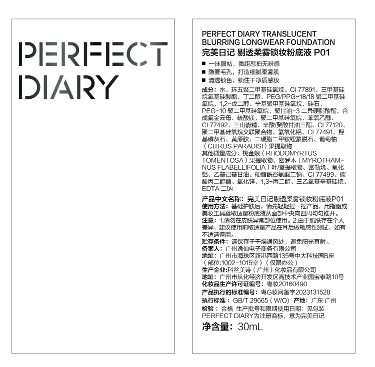 完美日记 剔透柔雾锁妆粉底液 30ml B01 黄一白