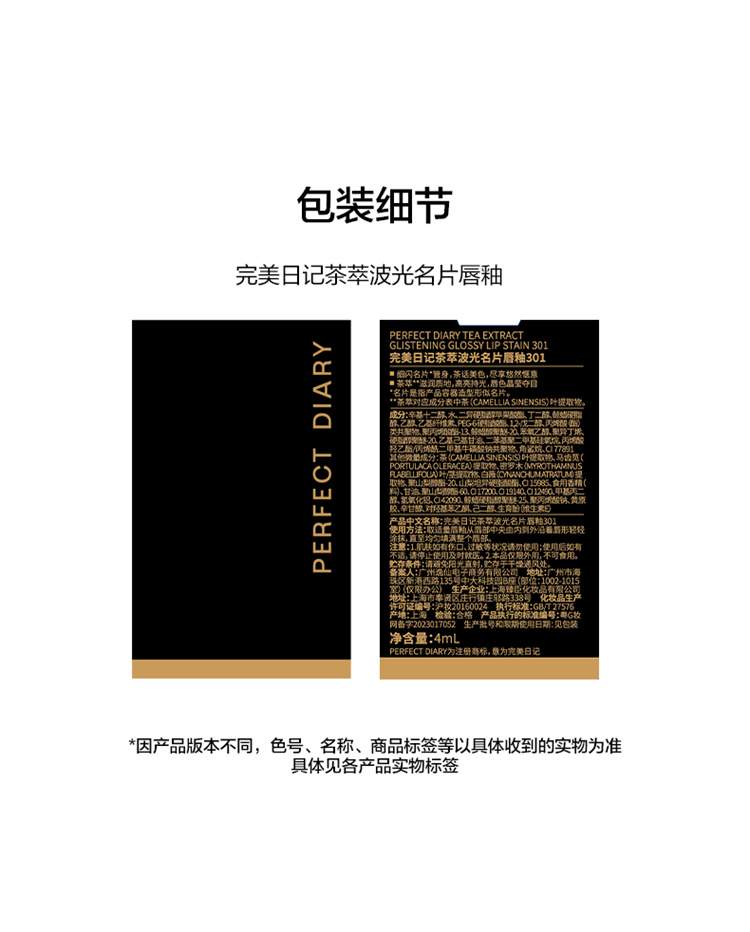 完美日记 茶萃波光名片唇釉 301 茉莉白茶