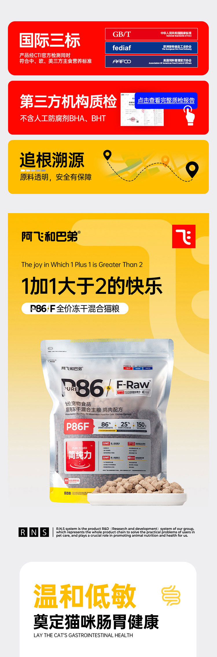 阿飞和巴弟 全价冻干生骨肉猫粮 1.5kg P86F