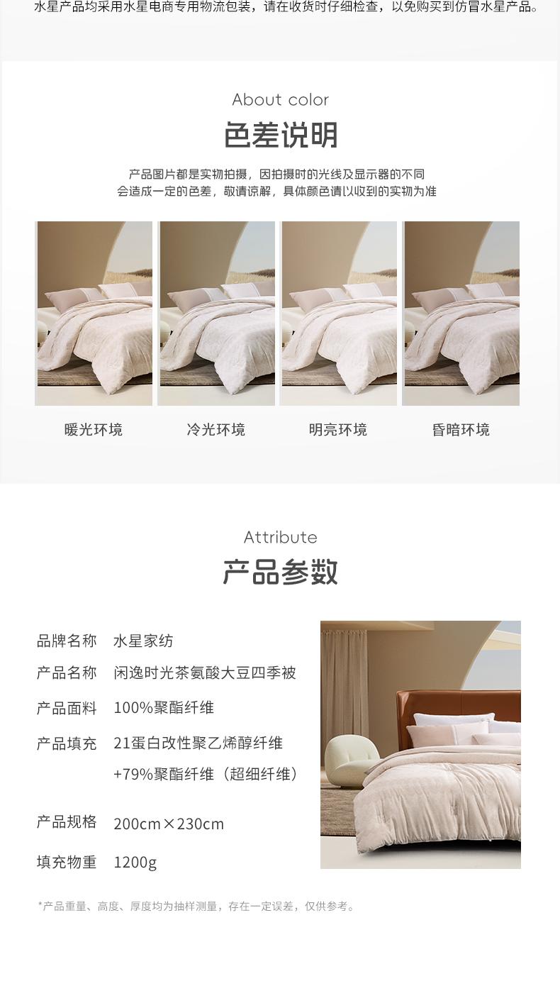 水星家纺 闲逸时光茶氨酸大豆四季被 128963 200cm×230cm