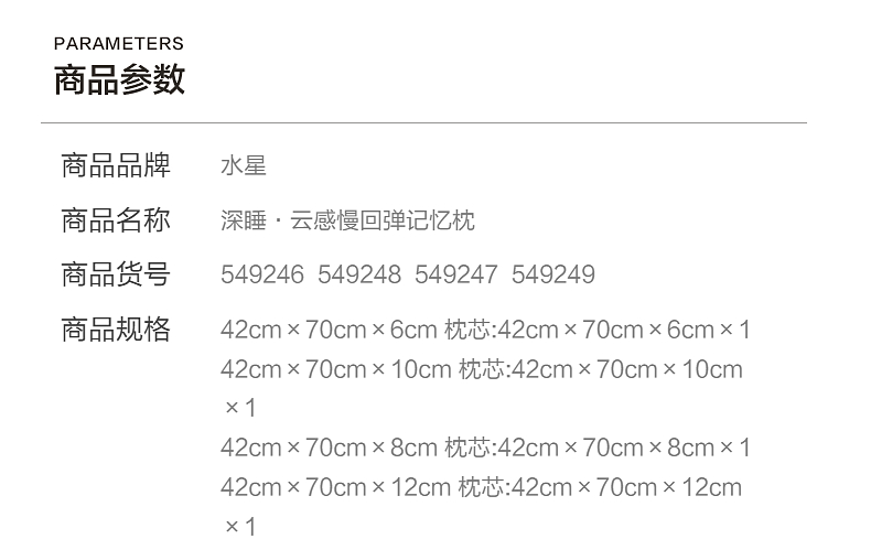 水星家纺 深睡·云感慢回弹记忆枕 (适中款)42cm×70cm×10cm