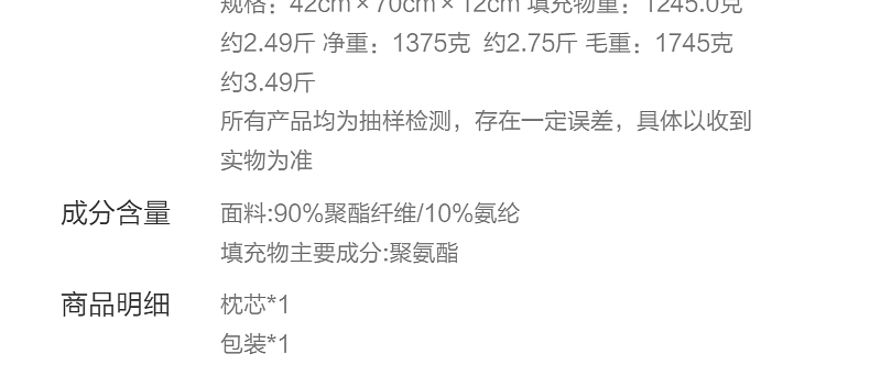 水星家纺 深睡·云感慢回弹记忆枕 (高款)42cm×70cm×12cm