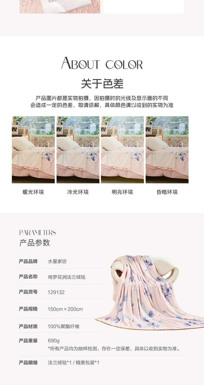 水星家纺 DH绮梦花涧法兰绒毯 129132 150cm×200cm