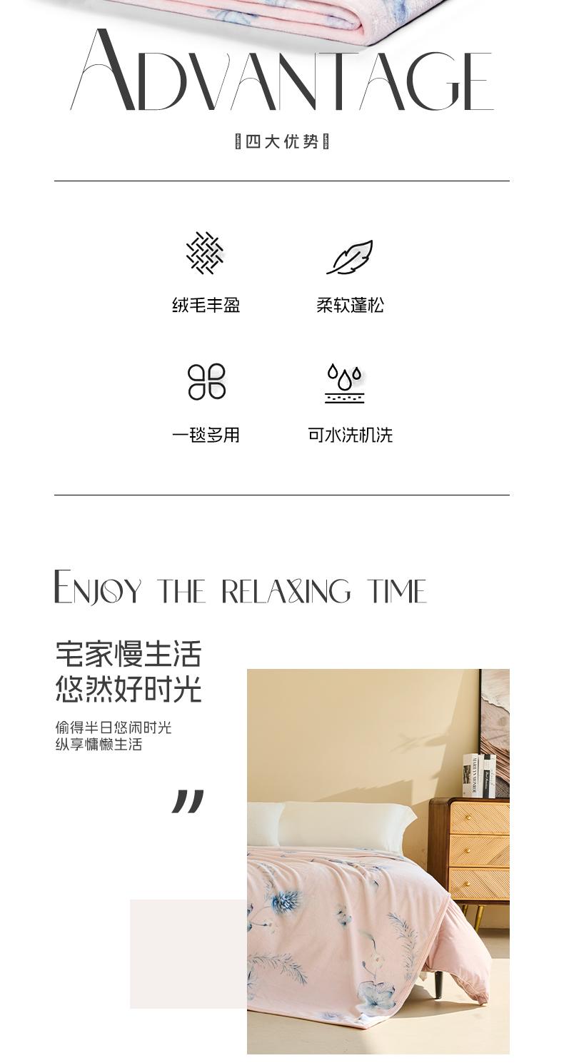 水星家纺 DH绮梦花涧法兰绒毯 129133 180cm×200cm
