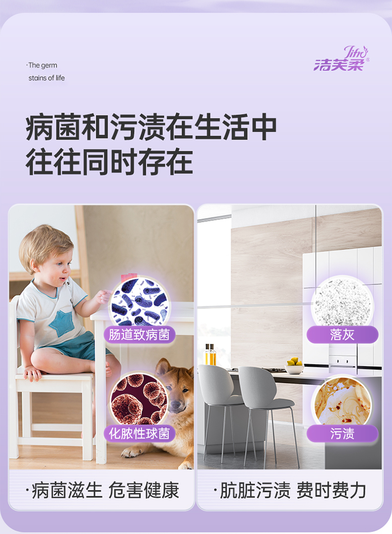 洁芙柔 铵盐杀菌不含酒精家用物表消毒湿巾 50抽*3包
