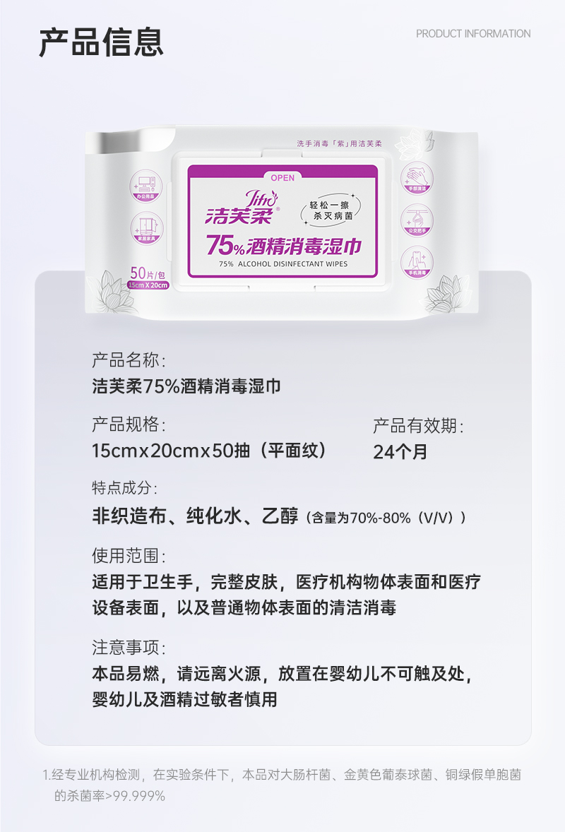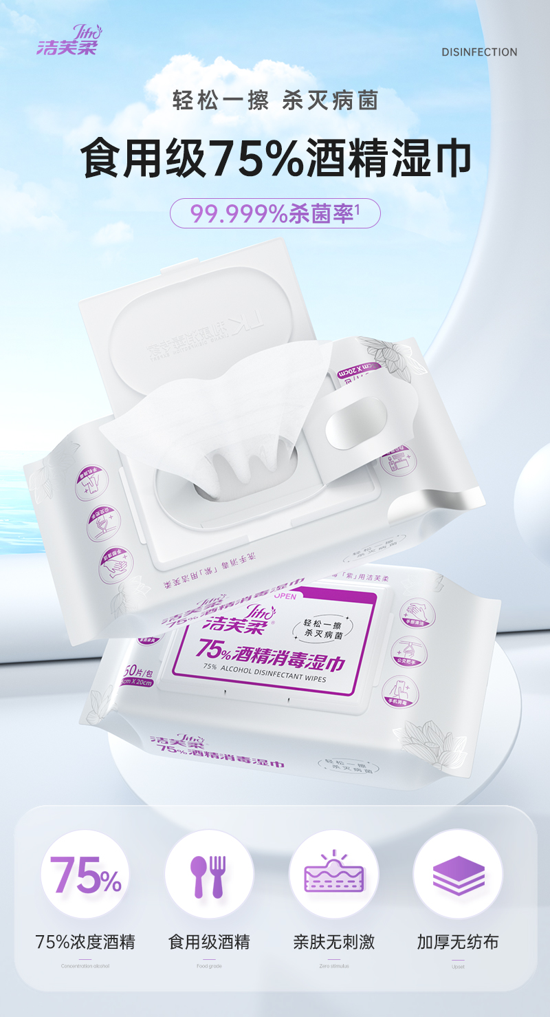洁芙柔 75%酒精消毒杀菌湿纸巾 50抽*3包