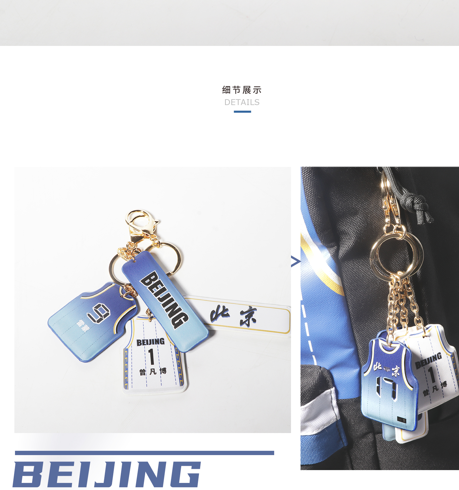 北京首钢篮球俱乐部 | 球衣钥匙扣球迷周边礼物 白色-1号曾凡博