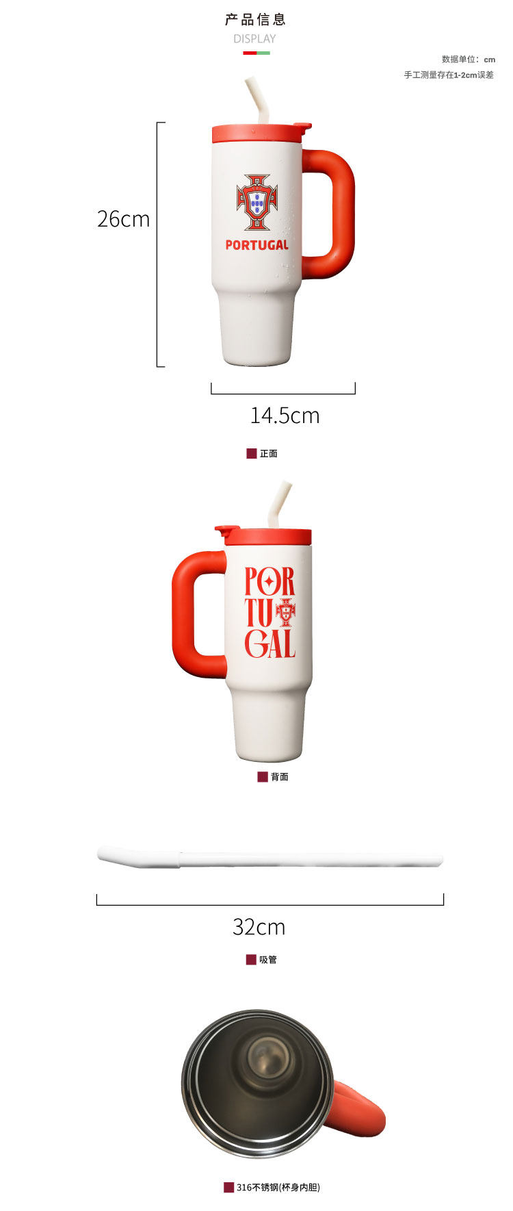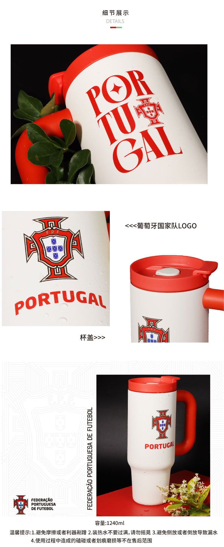 葡萄牙国家队 | C罗欧洲杯限定大容量吸管杯队徽款球迷周边 白红色