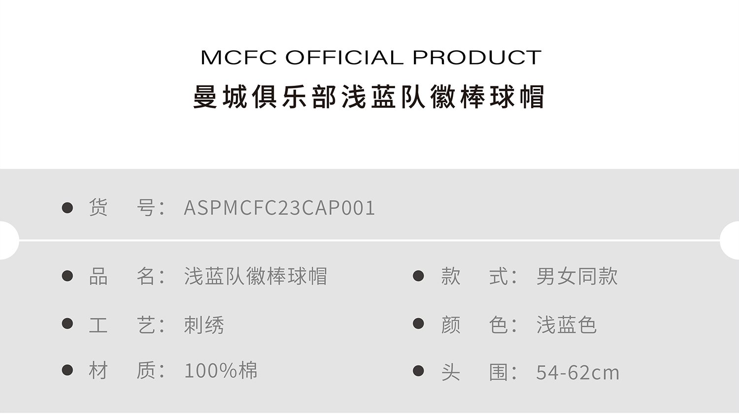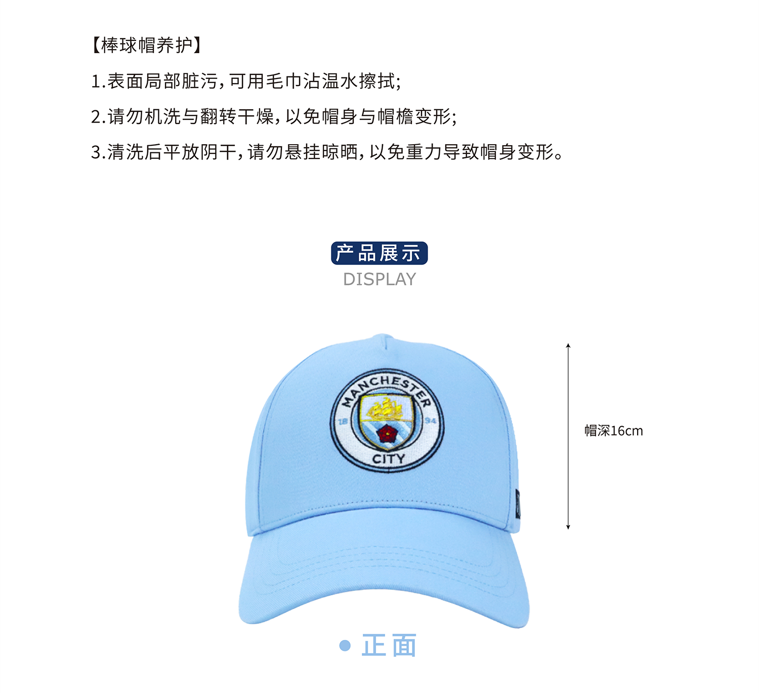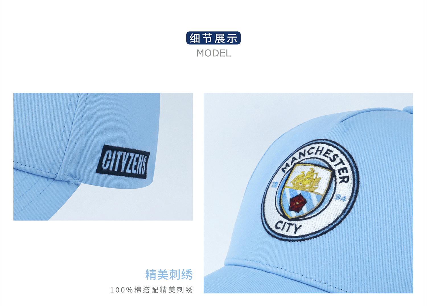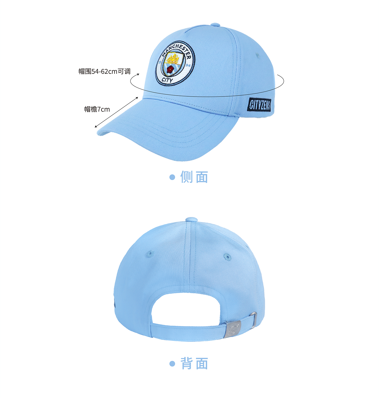曼城俱乐部丨曼城队徽棒球帽鸭舌帽休闲球迷周边 浅蓝色