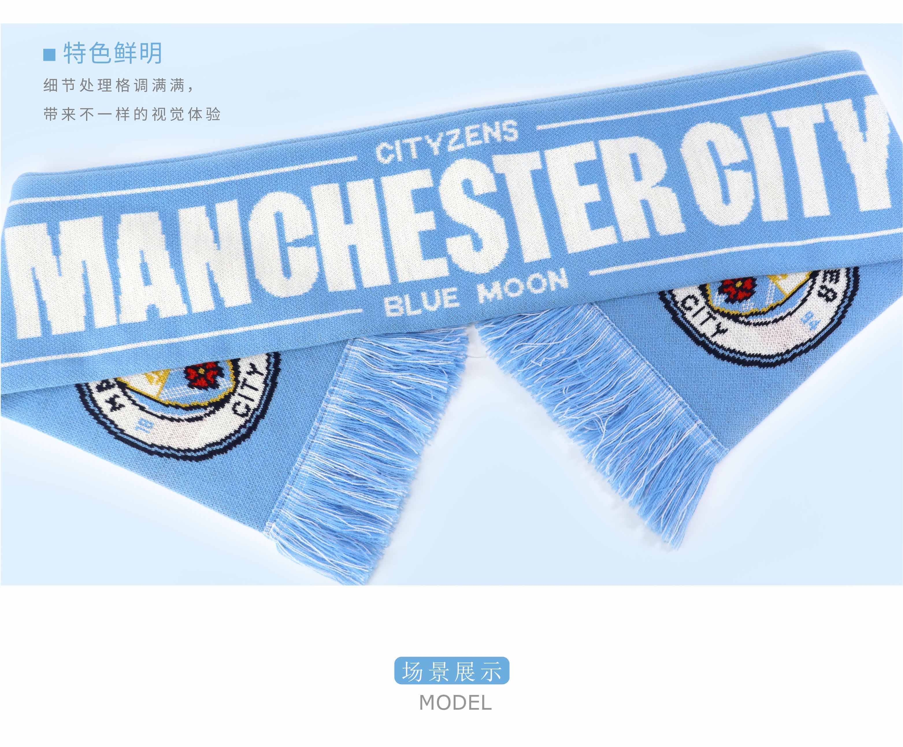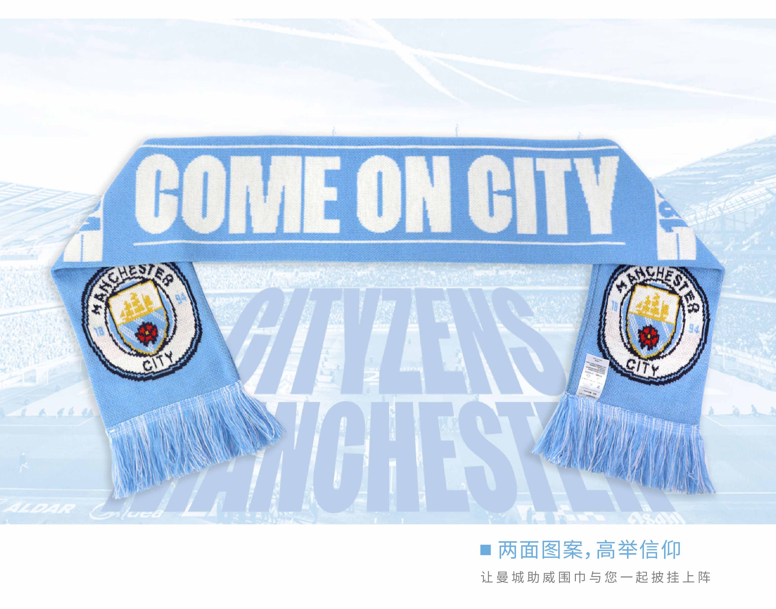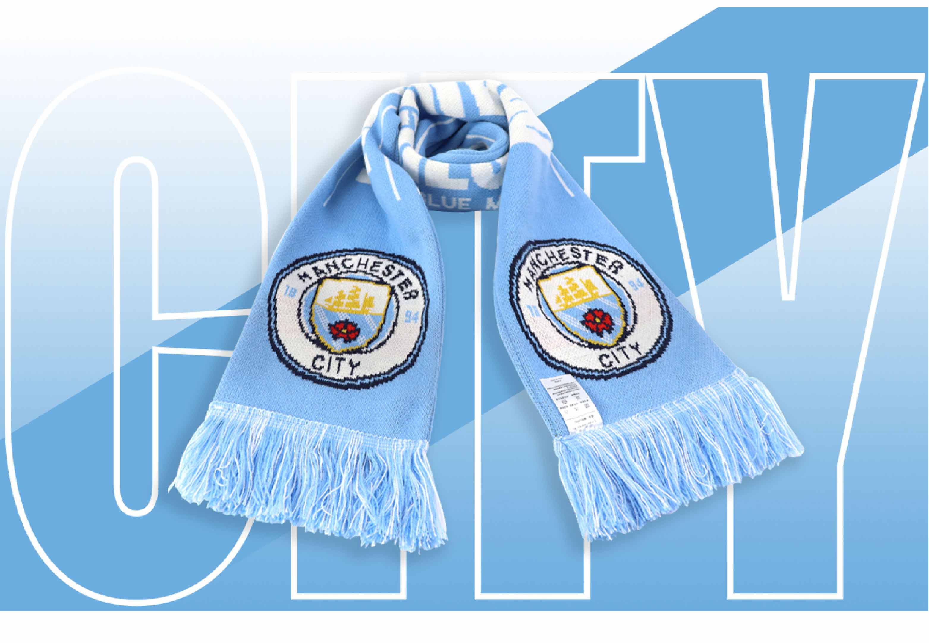 曼城俱乐部|双面针织围巾球迷周边纪念品 蓝色队徽款