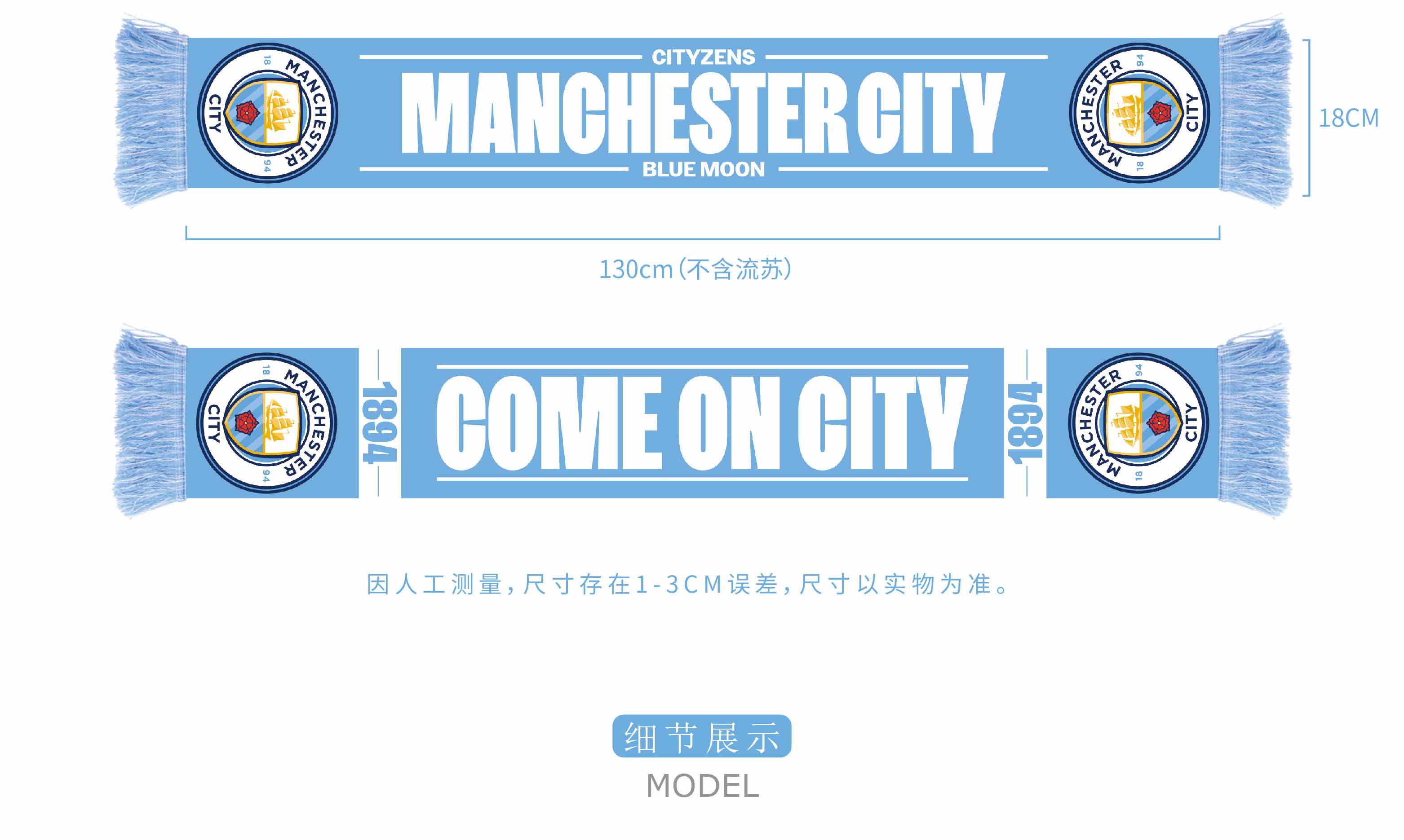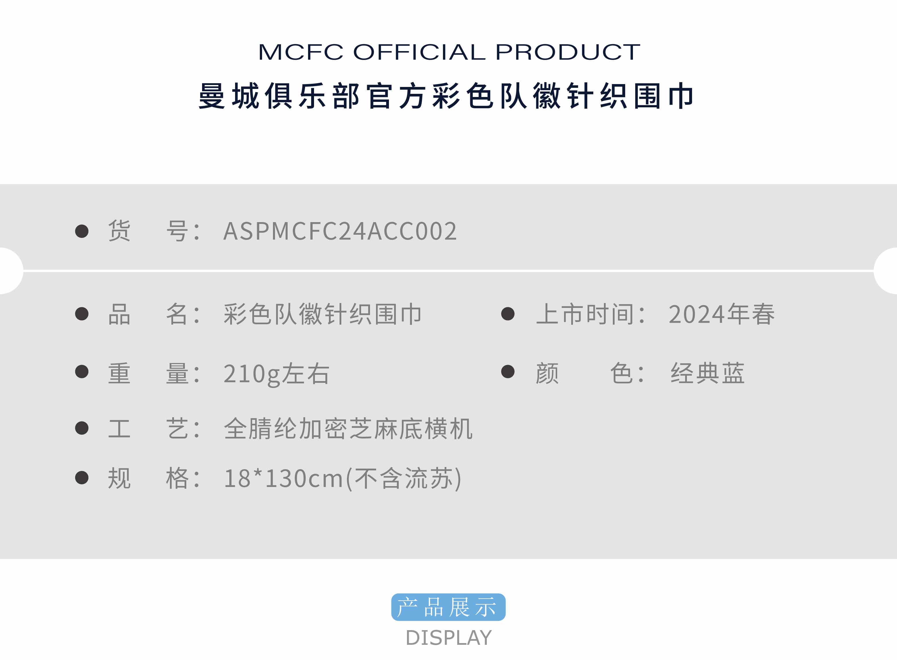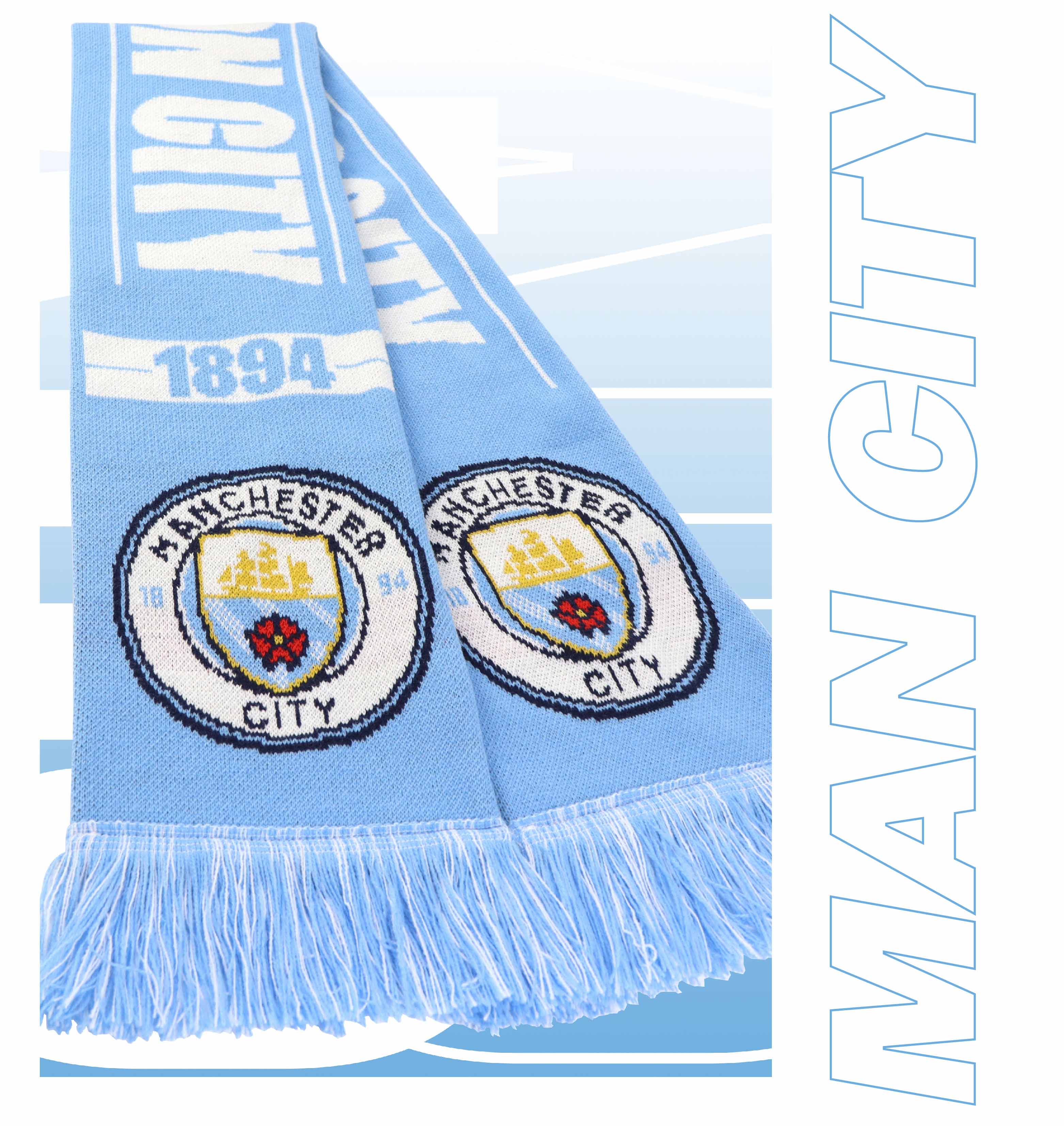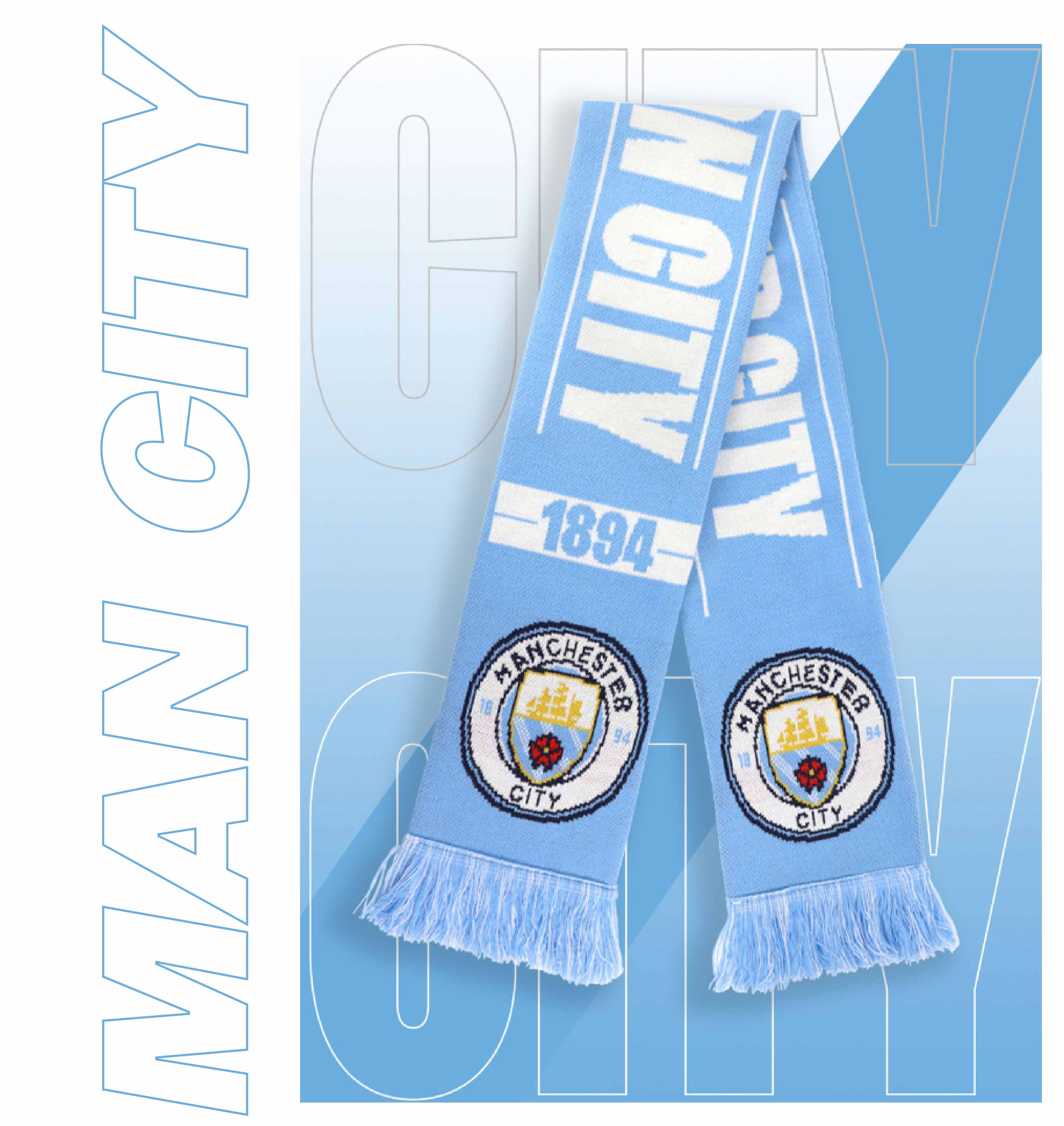曼城俱乐部|双面针织围巾球迷周边纪念品 蓝色队徽款