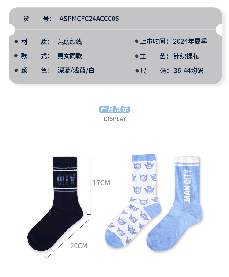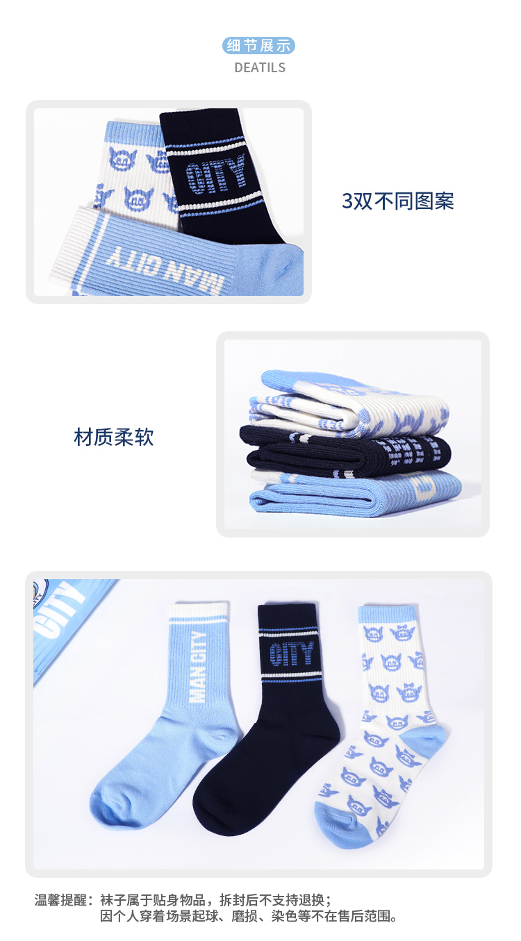 曼城俱乐部|潮款袜子时尚百搭中筒袜套装 黑白蓝三色