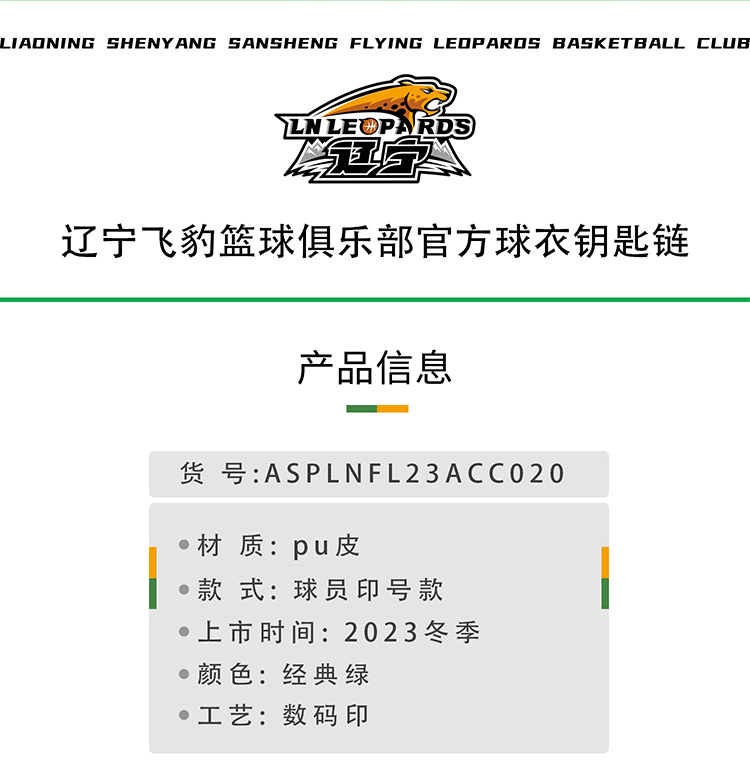 辽宁飞豹男篮|主场绿球衣款钥匙链挂件 22号-李晓旭