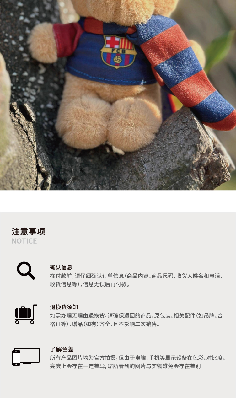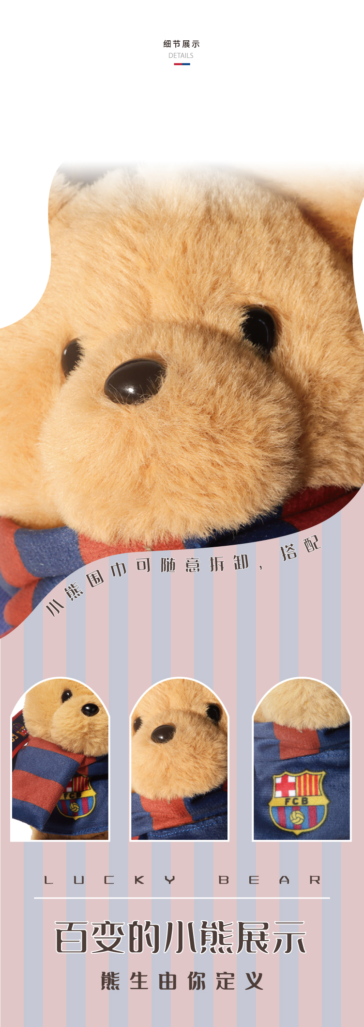 巴塞罗那俱乐部丨毛绒围巾小熊可爱玩偶挂件围巾 队徽球衣款