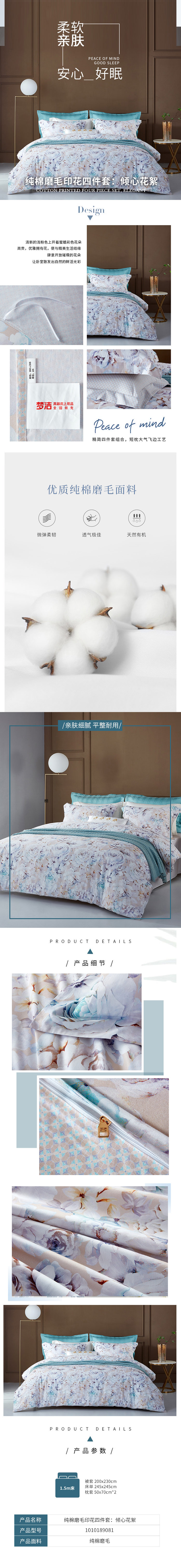 梦洁家纺 纯棉磨毛印花四件套倾心花絮 200*230cm