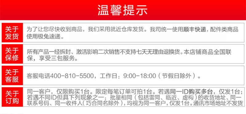 威海银行信用卡商城向您保证商户所售商品均为正品行货,可享受全国联保服务(所有商品享受法定三包售后服务),购买商品全部免运费。请您放心购买!